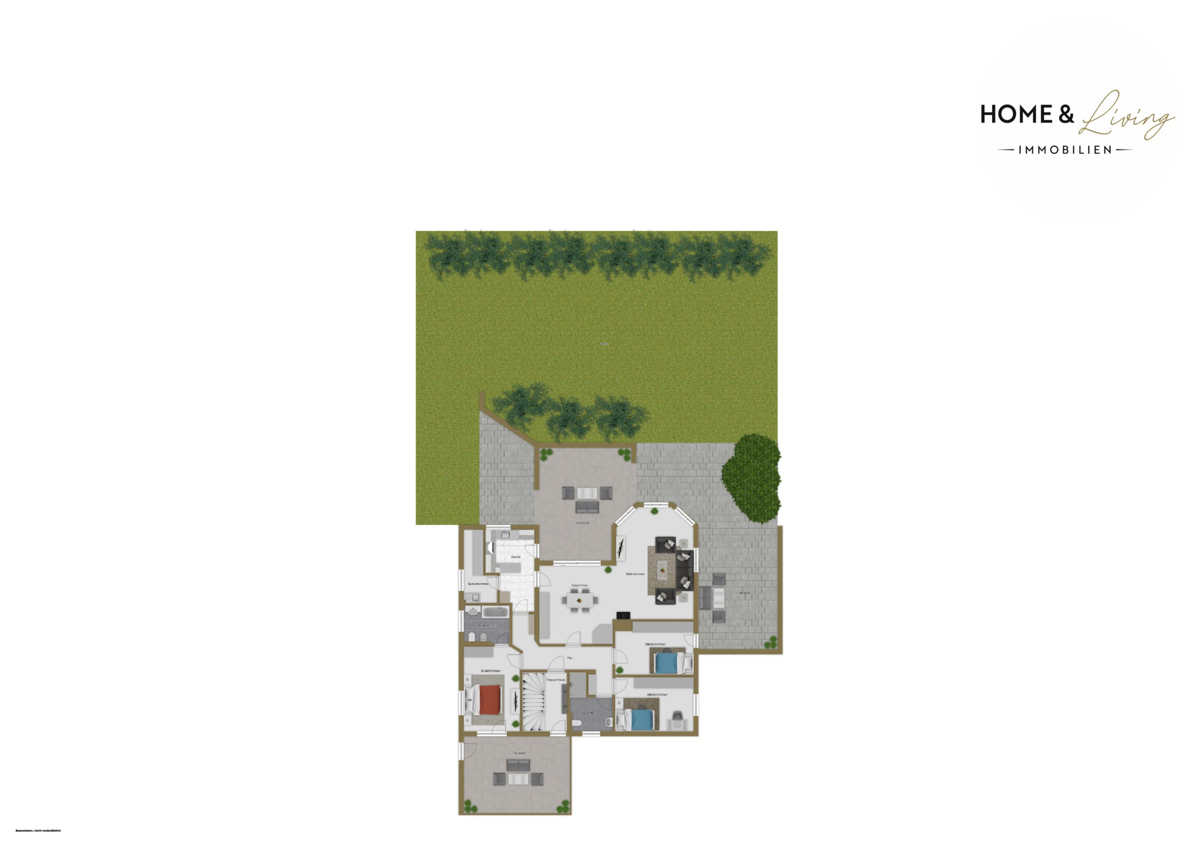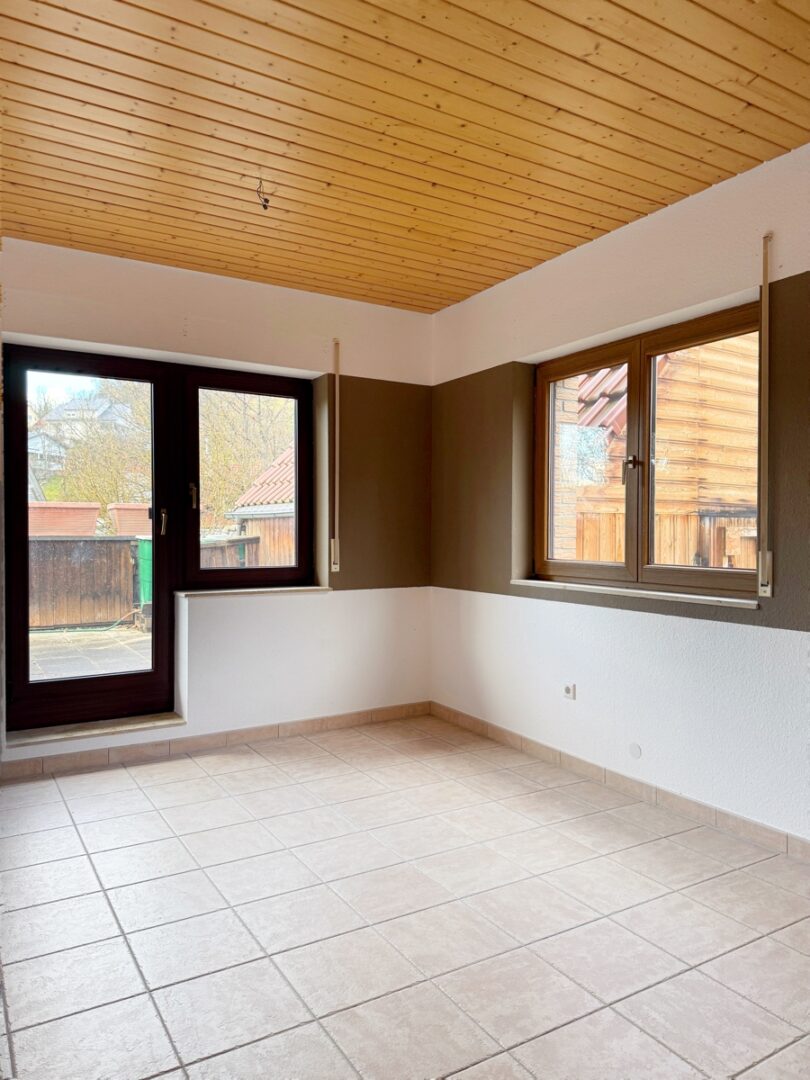 Das Herzstück Ihres neuen Zuhauses ist das helle Wohn- und Esszimmer mit großer Fensterfront – hier trifft Wohnlichkeit auf stilvolle Großzügigkeit. Von hier aus gelangen Sie auf Ihre sonnige Terrasse und in den traumhaften Garten – ein echtes Highlight für Ruhesuchende, Naturliebhaber und Sonnenanbeter.