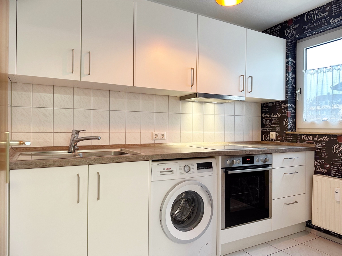 Ihre neuwertige Einbauküche ist funktional gestaltet, zusätzlich mit einer Waschmaschine ausgestattet und fügt sich nahtlos in das gepflegte und ansprechende Gesamtbild des Apartments ein. Auf Ihrem Balkon können Sie entspannte Momente im Freien genießen.