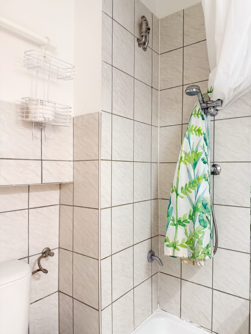 Das Badezimmer überzeugt mit Dusche, Waschbecken, WC und eigener Waschmaschine.