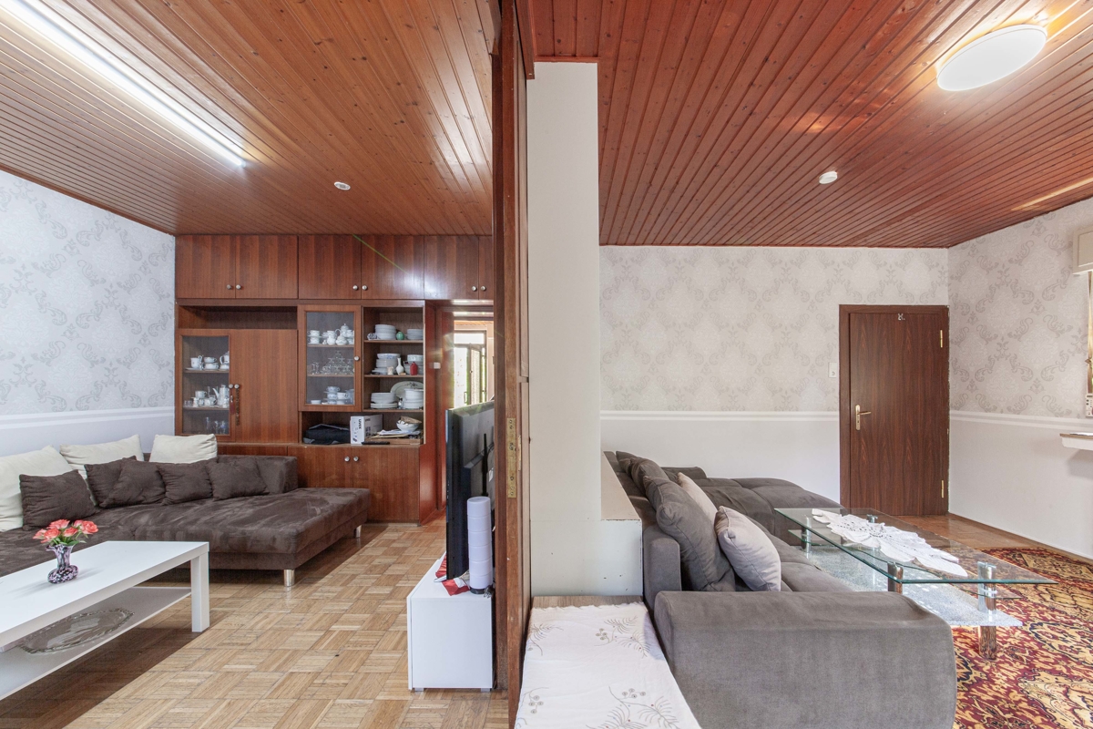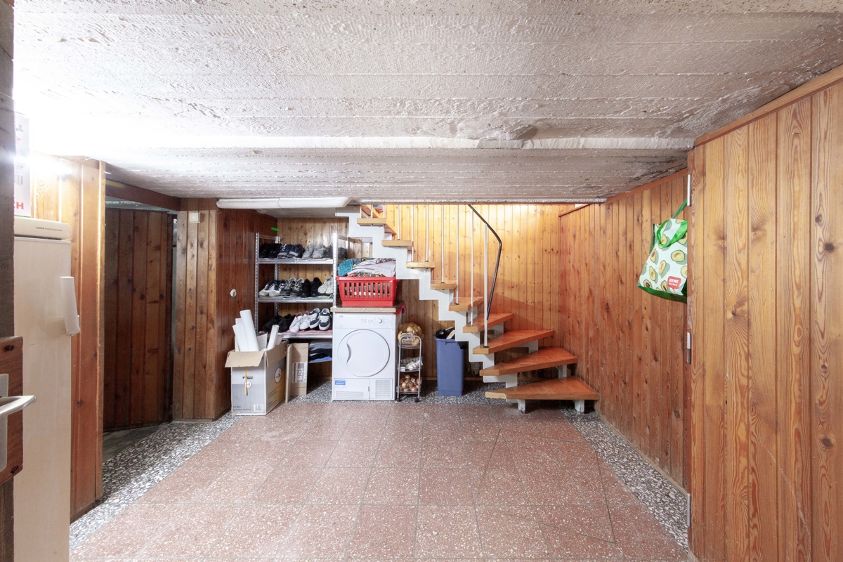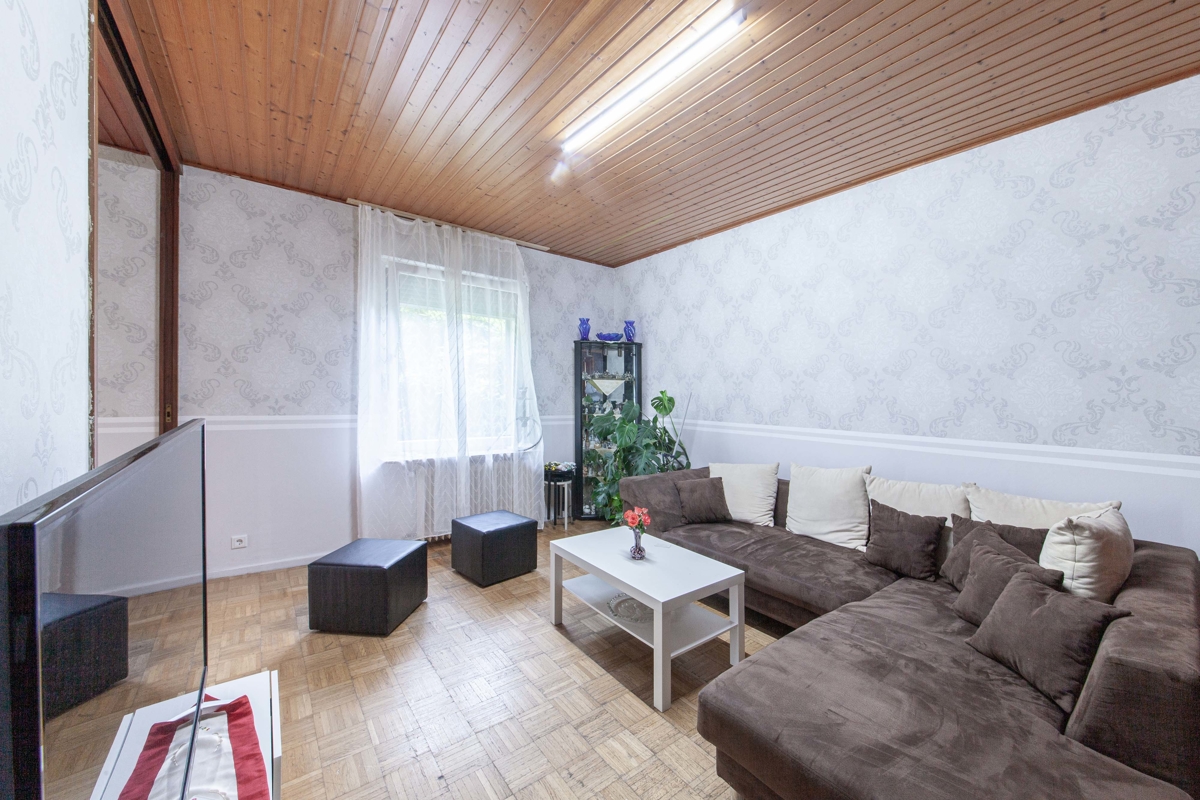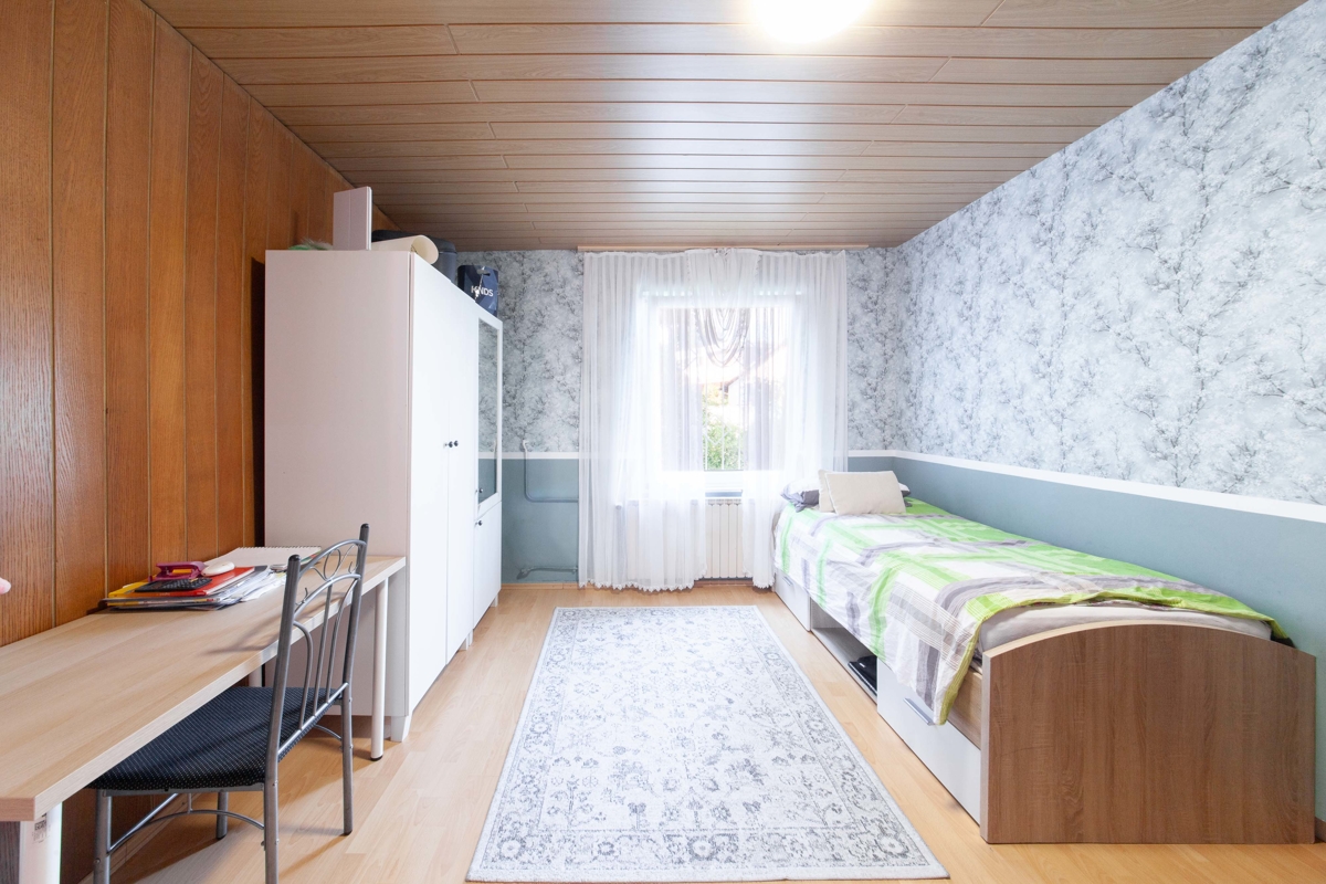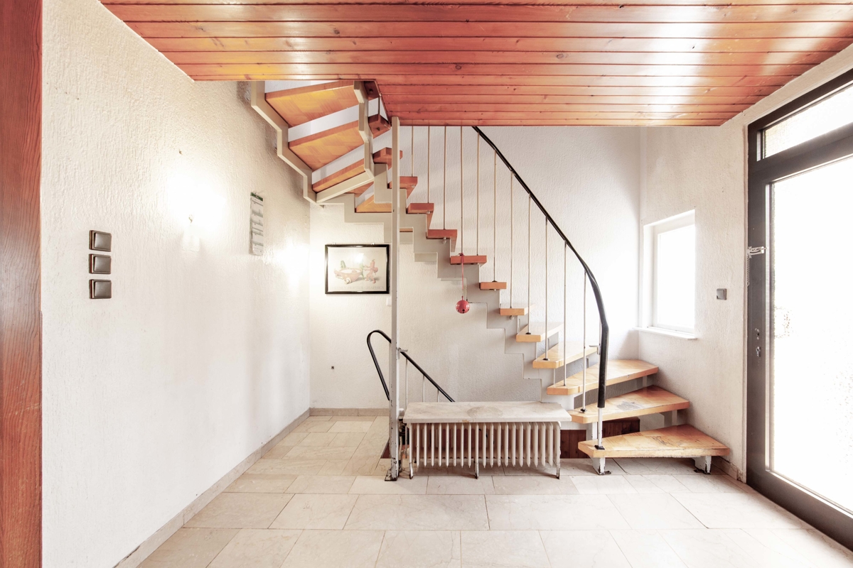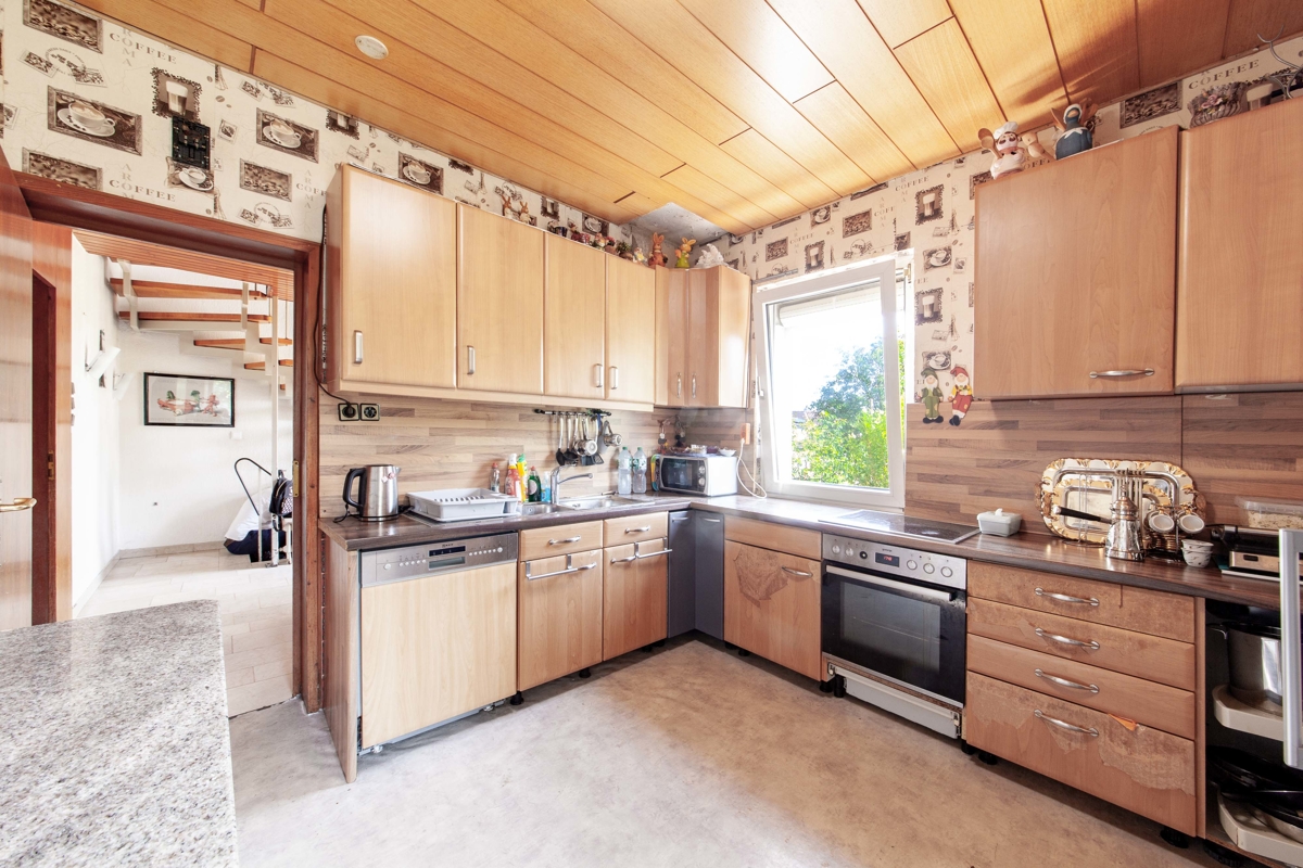 Das Haus erstreckt sich über Keller, Erdgeschoss, Obergeschoss sowie ein ausgebautes Dachgeschoss und verfügt über eine durchdachte Raumaufteilung. Im Erdgeschoss befinden sich typsicherweise Küche und Wohn- und Esszimmer mit Durchgang zur Terrasse, sowie ein Gäste-WC. Echtholzparkett und Naturstein schaffen eine hochwertige Wohnqualität. In den oberen Etagen sind Laminat- und Teppichböden verlegt. Sowohl Obergeschoss als auch Dachgeschoss haben in der Vergangenheit bereits als eigenständige Wohnbereiche gedient, daher befinden sich jeweils in einem Raum Anschlüsse für eine Küche. Bei der aktuellen Nutzung als 1-Familienhaus (mit der Küche im Erdgeschoss) stehen insgesamt 5 Schlafzimmer, zwei Bäder (eines mit Dusche und eines mit Badewanne) sowie ein Abstellraum zur Verfügung – ideal für mehrköpfige Familien. Zum Objekt gehören außerdem zwei Garagen, die praktischen Stauraum und sichere Stellplätze bieten. Beheizt wird das Haus über eine moderne Gasheizung (Erneuert 2014). Mit einer guten Vision und etwas Geschick lässt sich dieses Haus in einen Familientraum verwandeln.