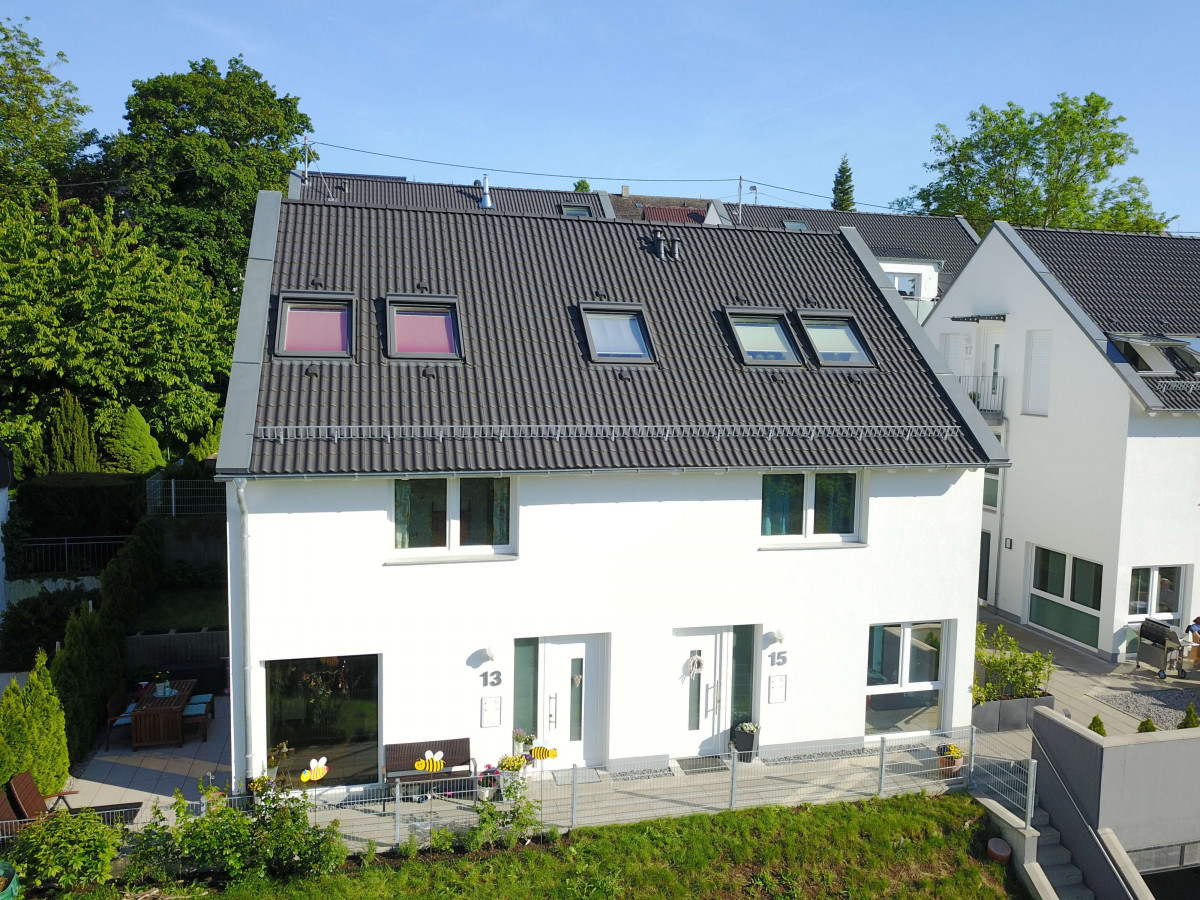 Die Wohnanlage in Waiblingen-Neustadt umfasst vier Mehrfamilienhäuser, die 2016 errichtet wurden. Der unverbaubare Blick auf das Untere Remstal fühlt sich an wie „Natur pur“.
